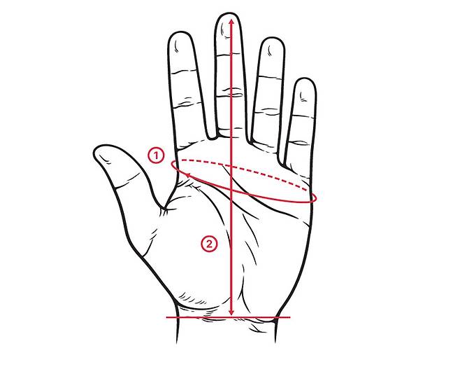 ③ ①과 ②의 측정값을 바탕으로 장갑을 선택한다.