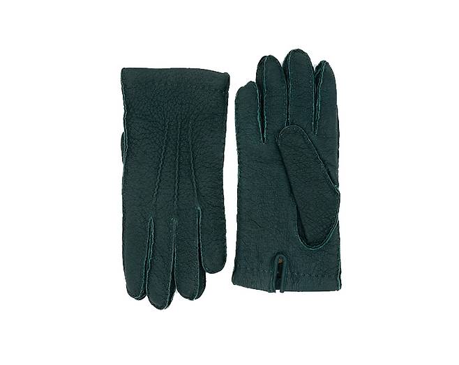 페커리 맨 멧돼지와 비슷한 동물 페커리의 가죽으로 만든 장갑. 차분한 검은색부터 진한 녹색, 노란색까지 다양한 컬러 옵션이 있고, 내구성도 우수하다. 200유로.