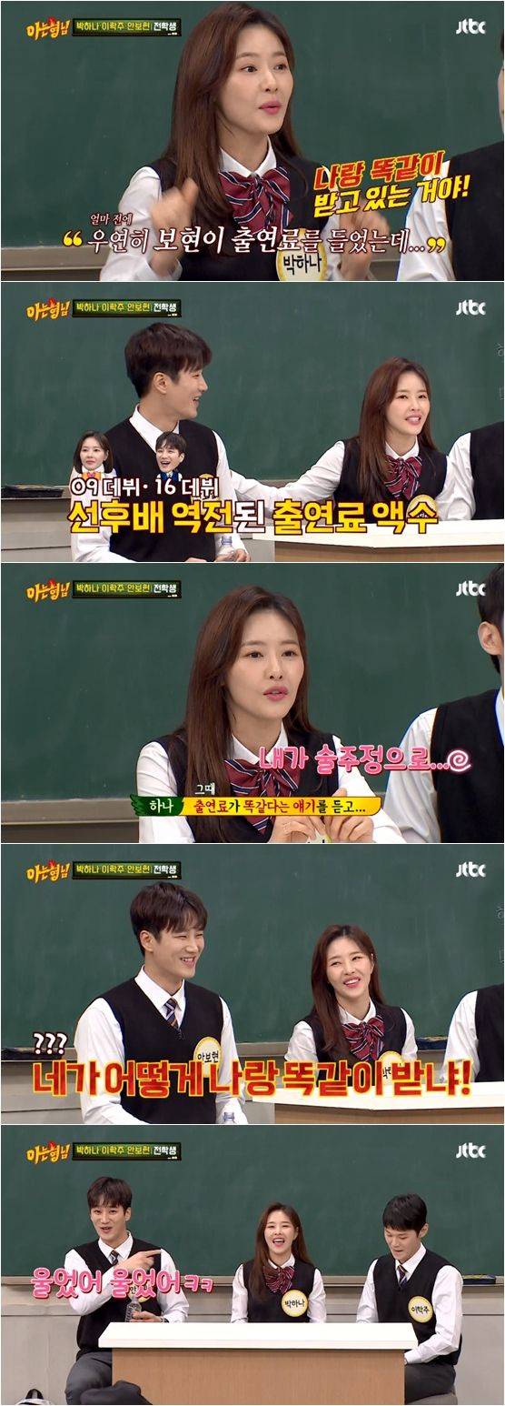배우 박하나가 같은 소속사 후배와 출연료 관련 에피소드를 솔직하게 털어놨다.