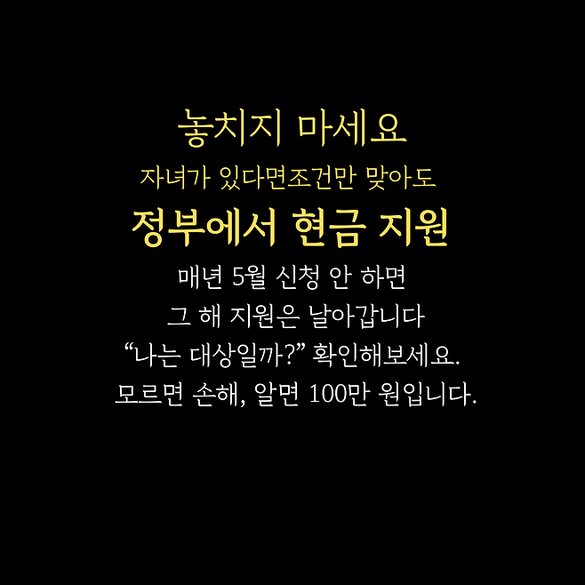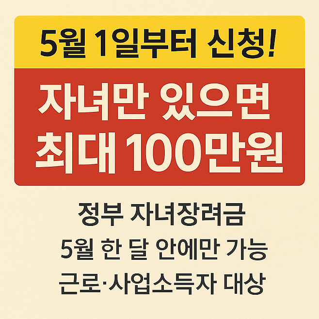 5월1일부터 신청! 자녀만 있으면 최대 100만원 받습니다