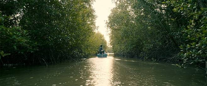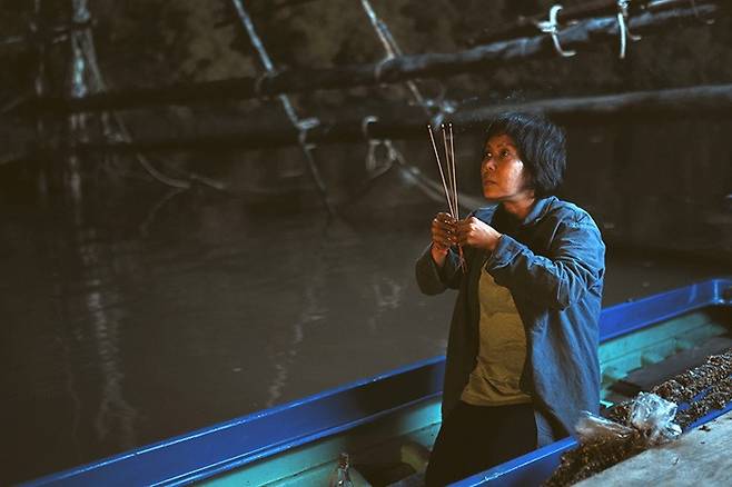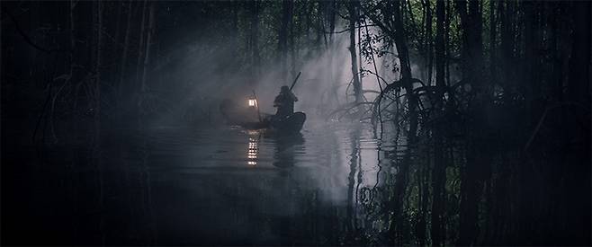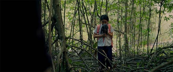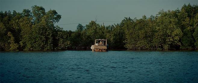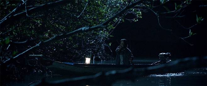 마야의 진실을 쫓는 레와 딸 늉이 처한 위기의 순간, 그리고 강의 음습한 분위기가 눈길을 끈다. 신과 망자에게 기도를 올리듯 경건한 모습으로 배 위에서 향을 피우고 손을 모으고 있는 레의 모습, 부적을 안대처럼 두르고 있는 모습은 익숙한 듯 낯선 이국의 샤머니즘이 유발하는 공포를 예고한다.