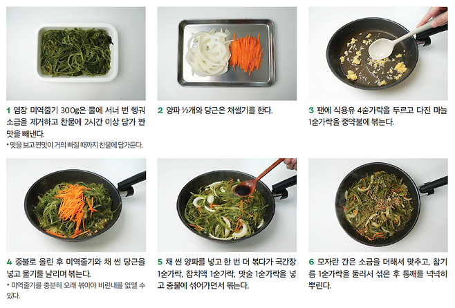 염장 미역줄기 300g, 양파 ½개, 당근 조금