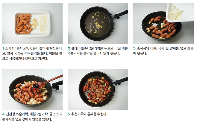 소시지 1봉지(240g), 양파 ½개, 마늘 8개