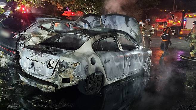 이 불로 승용차 1대와 옆에 주차돼 있던 SUV 차량 1대가 전소돼 소방당국 추산 약 2천300여 만 원의 재산피해가 발생했습니다.