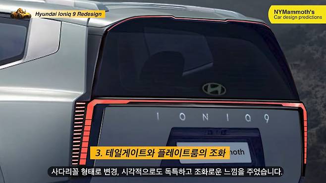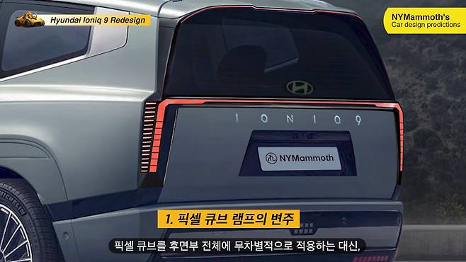 최근 공식 공개된 현대자동차의 아이오닉 9의 후면부 리디자인 렌더링이 뉴욕맘모스에 의해 최초로 공개됐다. 기존 디자인의 픽셀 큐브 램프를 재해석하고, 공력 성능을 유지하면서도 보다 세련된 레이아웃을 구현한 것을 확인할 수 있었다.