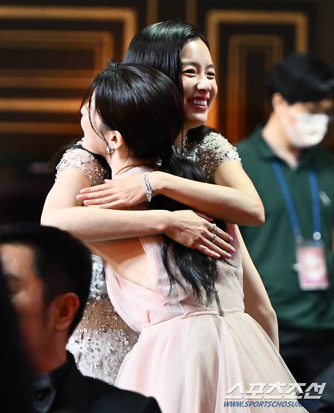 제3회 청룡시리즈어워즈(Bluedragon Series Awards)가 19일 인천 파라다이스시티에서 열렸다. 무빙에서 열연을 펼친 한효주와 고윤정이 포옹하고 있다. 인천=정재근 기자 cjg@sportschosun.com/2024.07.19/