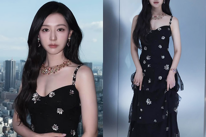 김지원의 불가리 행사 패션은 블랙 드레스의 섬세한 디테일과 주얼리의 화려함이 어우러진 완벽한 조합이었다.