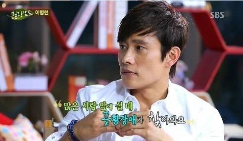 이병헌은 미국행 비행기에서 호흡곤란을 겪은 이후, 여전히 많은 사람들 앞에 서면 증상이 찾아온다고 했다.
