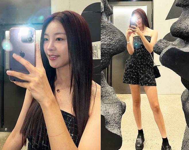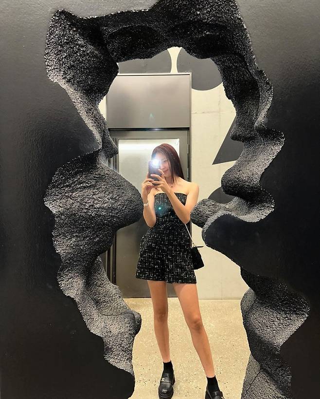 또, 고원희는 블랙 양말에 구두를 착용해 품격 있고 도회적인 분위기를 자아냈습니다.