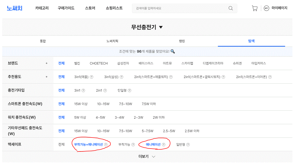 노써치 무선 충전기 카테고리에서는 다양한 옵션을 쉽게 확인할 수 있습는데요. 다양한 제품들 중에 애니메이션 기능을 지원하는지 여부를 포함한 상세 정보를 제공하므로, 사용자는 자신의 요구에 맞는 충전기를 편리하게 선택할 수 있습니다.
