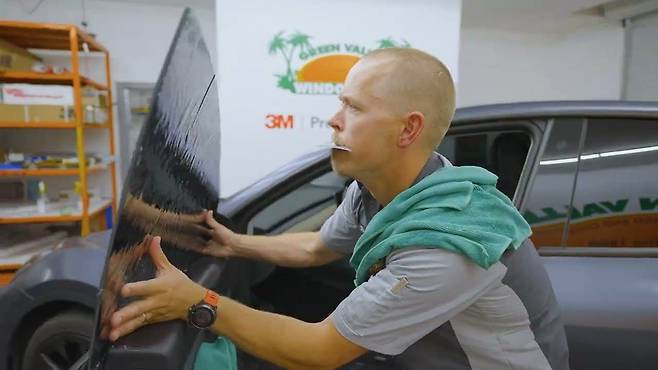 버스 정류장 유리 표면을 자사 필름으로 코팅해,