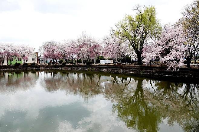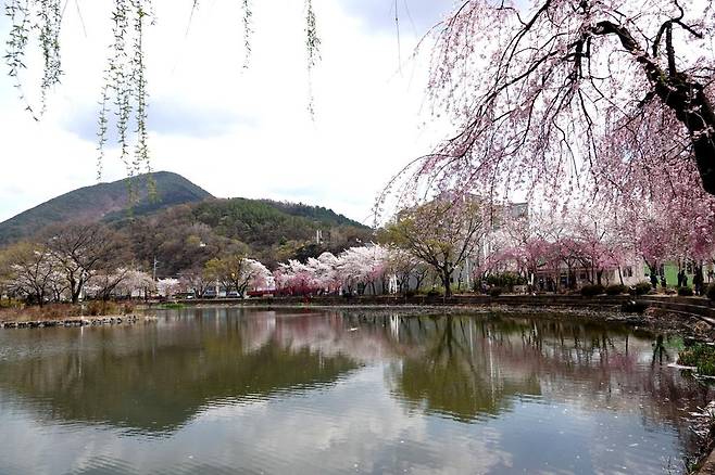 특히 봄이 되면 연지못 둘레에 수양벚꽃이 만개해 많은 관광객들의 발길이 이어집니다.