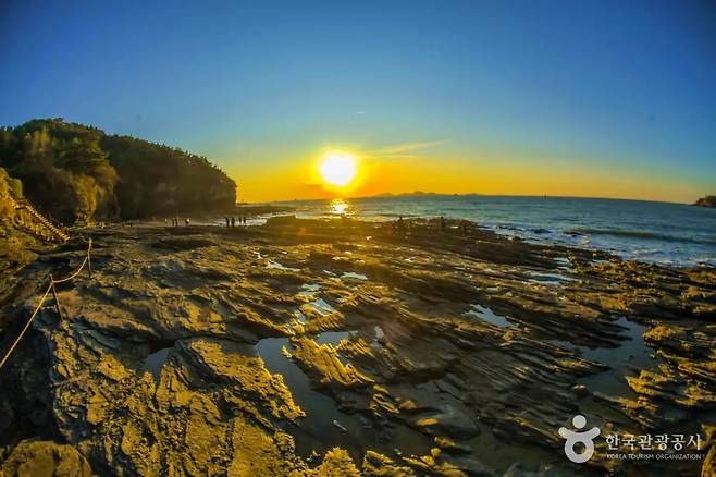 전북 부안에 위치한 변산반도 채석강은 오랜 세월 파도와 바람에 의해 깎여 만들어진 독특한 지질 경관을 자랑한다. 마치 수만 권의 책을 쌓아놓은 듯한 퇴적층은 그 자체로 거대한 예술 작품이며, 썰물 때 드러나는 해식동굴은 또 다른 신비로운 풍경을 연출한다.