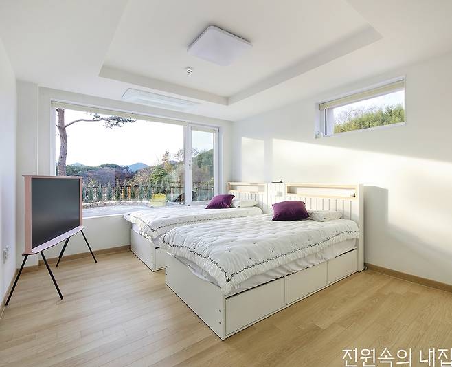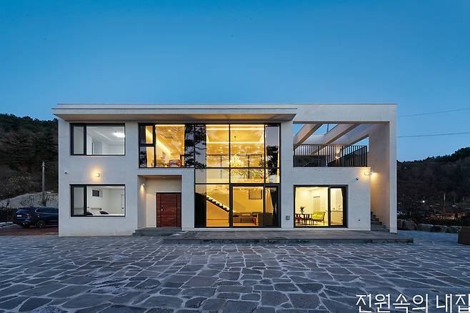 시공은 건축주가 직접 맡아 진행했다. 평생 그려온 꿈이면서 가족과 함께 머물 집이기에 신중을 더했다. 특히 기초와 골조에 신경을 썼는데, 콘크리트 강도를 상당히 높여 타설해 설비를 위한 배관 타설에 애를 먹을 정도였다고. 그렇게 반년 뒤, 소나무 동산 위에 군더더기를 덜어낸 담백한 주택이 들어섰다.
