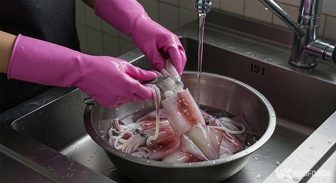 9. 손질한 오징어를 볼에 담고 우유에 5분간 담가둔다
