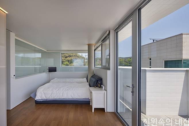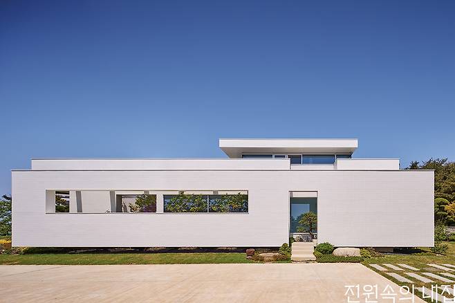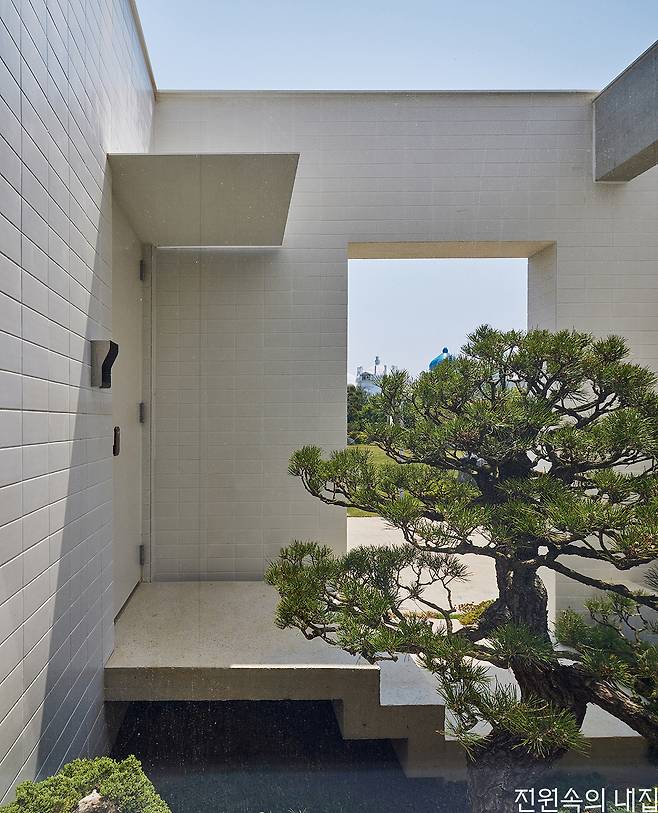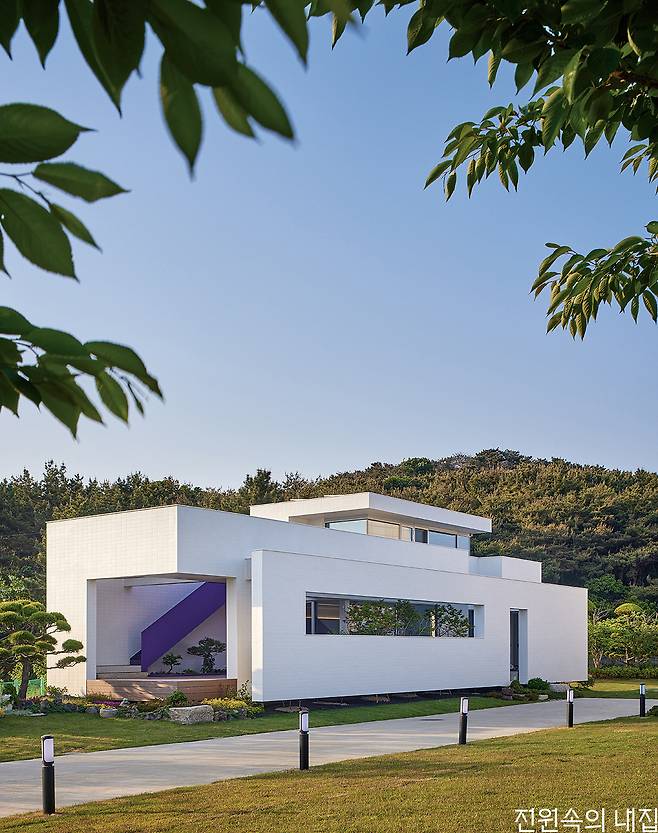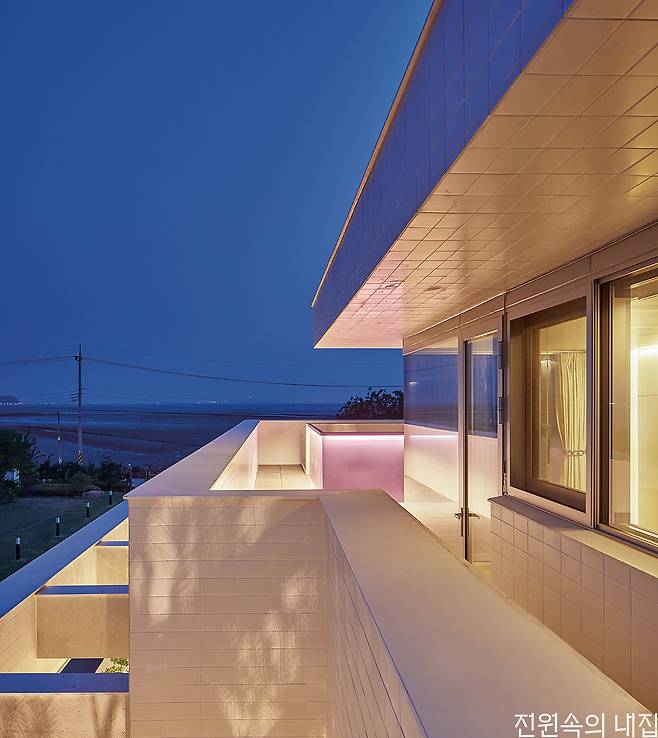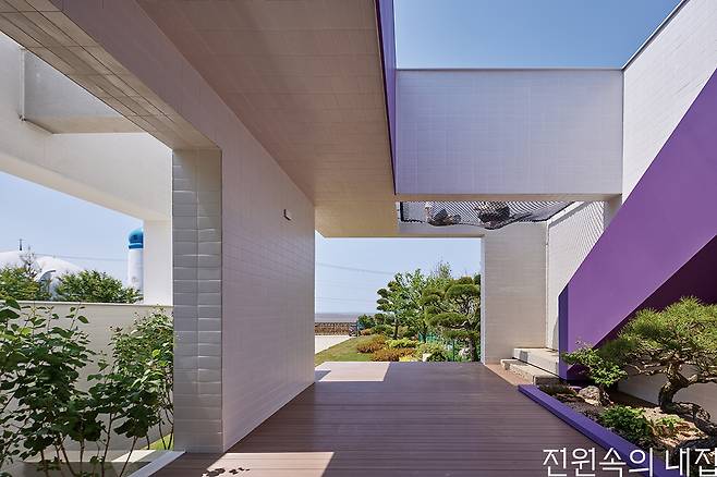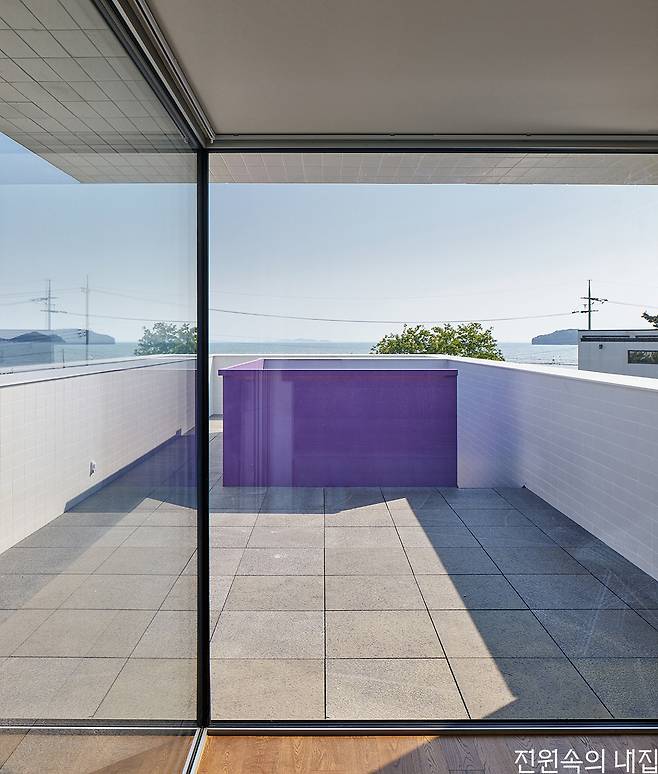 바닷가에서 멀지 않은 대지에 자리했기에 고민해야 하는 부분은 다름 아닌 염분이었다. 그래서 건물의 외장재는 세라믹 타일을 선택했다. 일반적인 다른 외장재와 비교했을 때 염분에 의한 부식에 강한 특성과 각종 오염에서 자유로울 수 있다는 점이 선택에 크게 영향을 주었다.