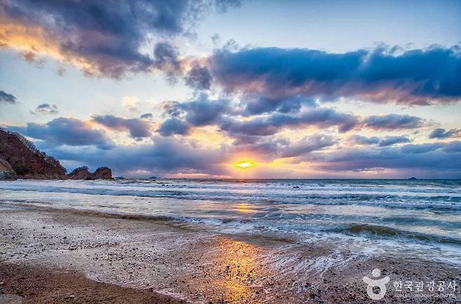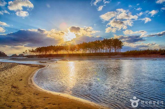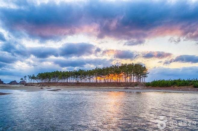 운여해변이 진짜 매력을 발휘하는 시간은 해질 무렵입니다. 해가 서서히 수평선 너머로 기울기 시작하면, 바닷가 전체가 붉은빛으로 물들며 하루 중 가장 아름다운 순간을 선사하죠. 특히 해변 남쪽, 소나무가 심어진 방파제는 밀물 때 바닷물이 호수처럼 고이며 섬처럼 보이는데, 그 모습이 마치 영화의 한 장면 같습니다.