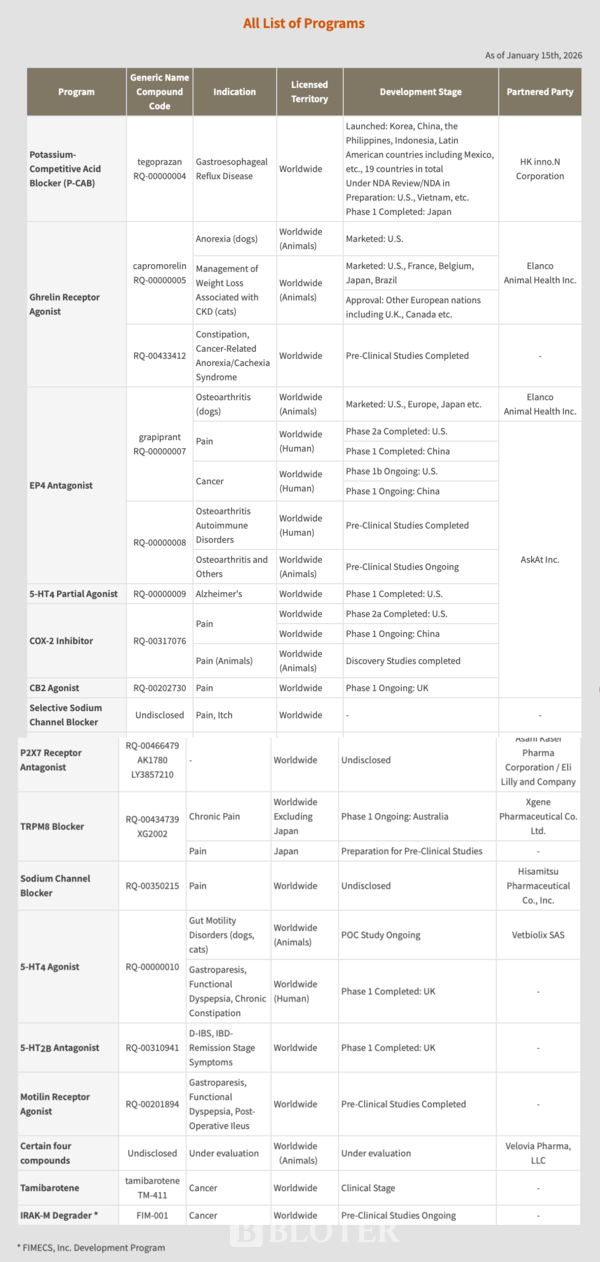 '넥스트 케이캡' 파이프라인 확보는 덤이다. 회사는 이번 계약으로 라퀄리아와 공동 연구개발(R&D)을 추진하겠다는 구상이다. 라퀄리아가 가진 핵심 파이프라인으로는 소화기 질환, 통증, 항암 분야를 포함해 총 18개의 신약 파이프라인을 보유하고 있다.