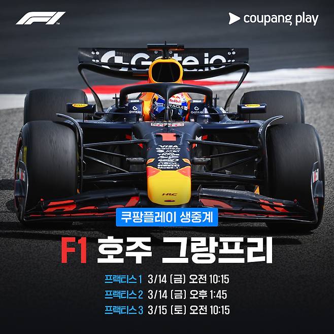 쿠팡플레이는 오는 14일 오전 10시15분 호주 그랑프리의 연습 세션 '프랙티스1'을 시작으로 15일 오후 1시20분 '퀄리파잉', 16일 오후 12시30분 '레이스'를 차례로 중계한다.