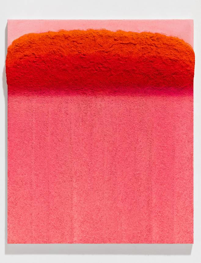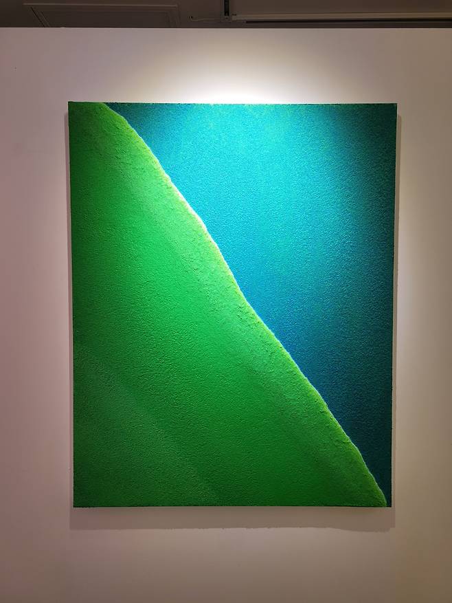 액자에 갇힌 그림에서 탈출한 아르테포베라(Arte Povera)의 개념과 같이, 틀에 갇힌 창작을 벗어던진 본질 세계로의 질문과 만난 것이다. ‘물감-미디엄’ 등과 함께 섞고 이겨서 올려진 캔버스 위에서 톱밥은 또 다른 유기체가 되어 우리 앞에 자리한다. 고도로 집중한 작가의 신체 행위를 통해 흔적과 마띠에르, 자연의 변화 자체를 온전히 품은 다양한 레이어의 색채미감을 새로운 감각의 회화로 창출하는 것이다.
