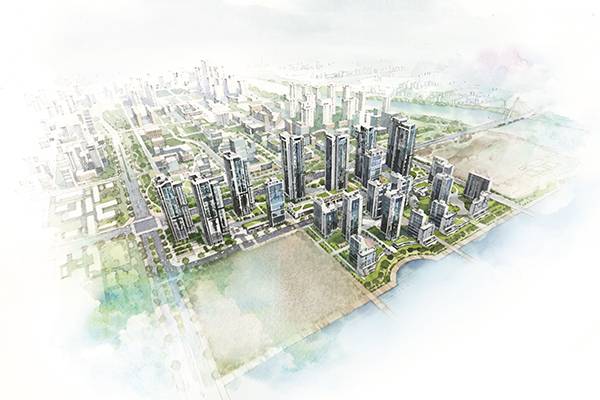 이외에도 도시 외곽으로는 대규모 R&D용지가 총 13개 블록이 배치되어 있습니다. 고소득 직장인과 연구원들의 직주근접 수요를 짐작할 수 있는 대목이죠. 높이계획이 20m 수준으로 제한되어 있기 때문에, 도시 중앙의 공동주택(최고 110m)과 주상복합(최고 150m)도 많은 세대가 바다 조망을 누릴 것으로 예상됩니다.