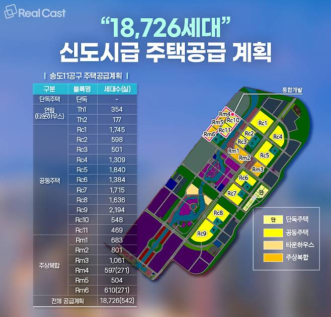 규모도 상당합니다. 주택건설계획에 따르면 송도11공구에는 총 약 1.8만여 세대(오피스텔 미포함)의 주택 공급이 계획되어 있는데요. 3기 신도시인 인천 계양테크노밸리나 부천 대장지구에 필적하는 수준입니다. 일개 공구 수준이 아니라 하나의 어엿한 신도시로 취급받아도 이상하지 않을 규모입니다.