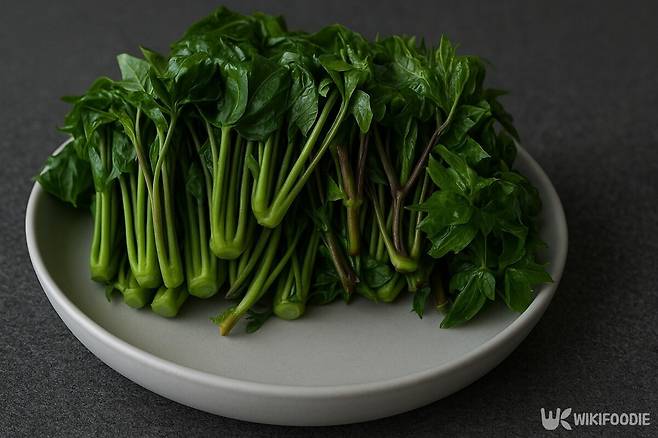 먹을 때는 두릅과 비슷하게 살짝 데쳐 초고추장에 찍어 먹는 경우가 많은데, 마치 쌀국수 속 고수를 먹는 듯한 향과 맛이 난다.