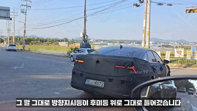 정차 상태에서는 DRL 패턴이 애매했지만, 주행 중에는 상하로 나뉜 DRL 패턴이 선명히 드러났다. 이는 기아차 EV9와 쏘렌토의 디자인 콘셉트를 연상케 한다.