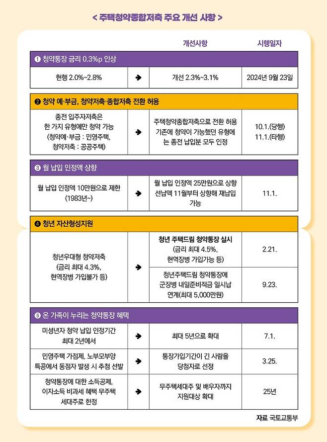 11월 1일부터 기존의 청약통장 월 납입 인정액이 10만원에서 25만원으로 상향 조성됐다.