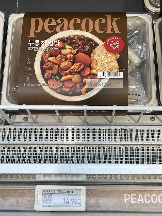 피코크 누룽지찜닭은 국내산 닭고기와 떡, 채소가 포함된 1.215kg 대용량 밀키트로, 2인분 기준 약 30분 만에 조리 가능해요.