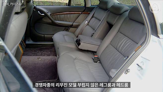 특히 이 차의 진가는 뒷좌석에서 드러나죠. 실내 공간 확보에 불리한 후륜구동계를 사용했음에도 거주성만큼은 독보적이었습니다. 높게 솟은 센터 터널은 어쩔 수 없었지만, 경쟁차 중에 리무진 모델 부럽지 않은 레그룸과 헤드룸, 마치 거실 한쪽에 놓여있는 가죽 소파를 그대로 우겨놓은 것 같은 뒷좌석 시트는 그 생김새만큼이나 남다른 푹신함으로 착좌감은 이후 출시된 후속 차량들보다 낫다고 평하시는 분들도 많아요.