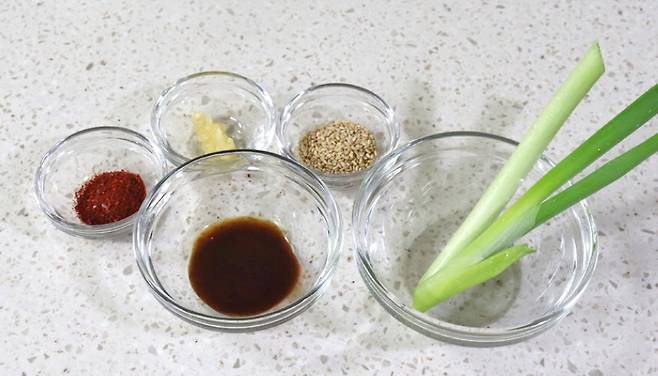 3.다진 마늘, 파, 국간장, 참기름, 고춧가루, 깨소금 투하! 조물조물 무쳐주기