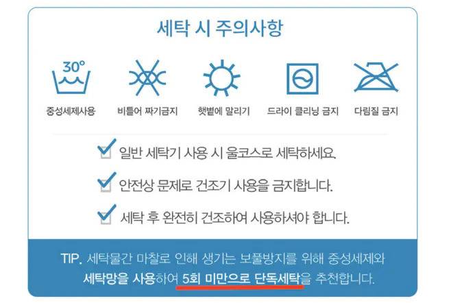 울샴푸나 중성세제를 사용해 세탁해야합니다.