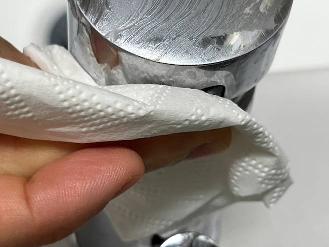 그다음 마른 천으로 깨끗하게 닦아내면 얼룩이나 물때 등이 한 번에 싹 사라집니다. 간단하게 닦기만 하면 돼서 쉽게, 자주 할 수 있는 청소법입니다.