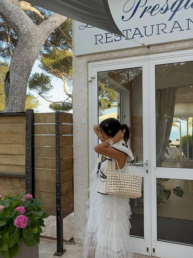 여기에 샤넬 브레이슬릿과 내추럴한 라탄백이 더해져, 보는 이로 하여금 “진짜 여신이 나타났다”는 반응을 이끌었다.