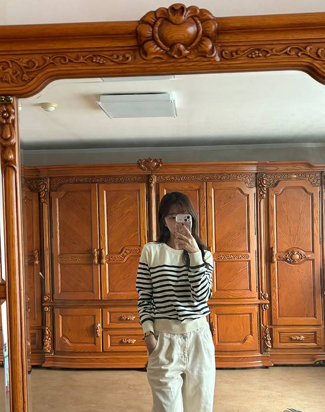 크림진에 스트라이프 니트. 이건 정말 정석이죠?