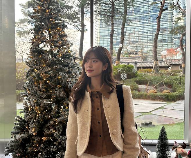 오떼뜨 자켓 안에 얇은 니트를 입어줬고, 치마는 더티스 제품입니다!