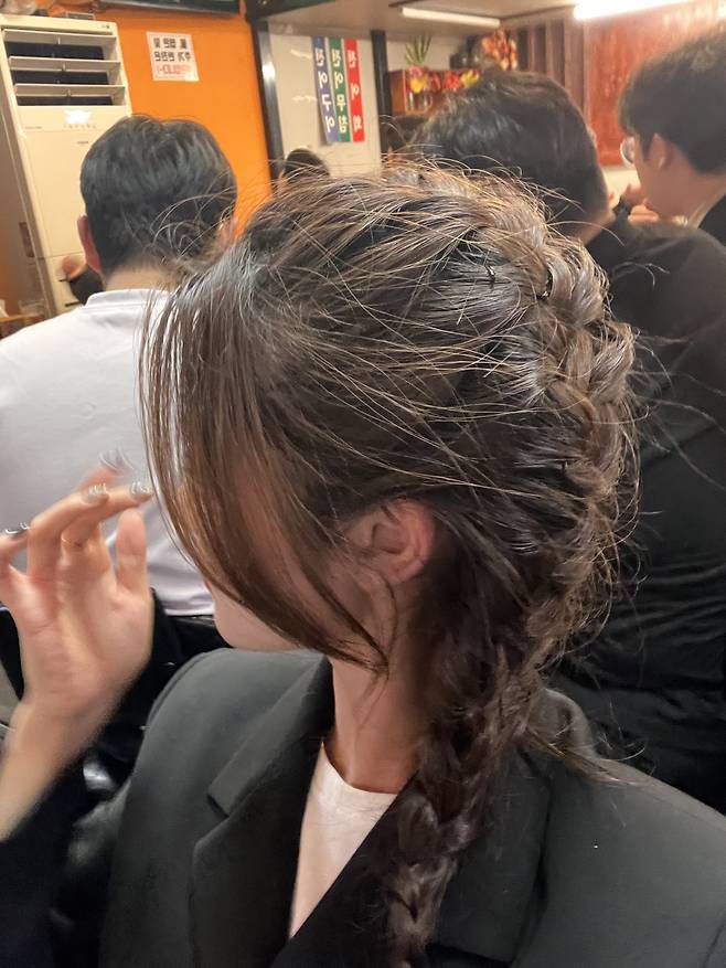 뭔가 룩이 차분한 것 같아서 디스코 머리로 포인트 줘봤어요 엄마손찬스..!