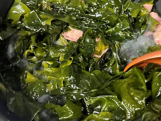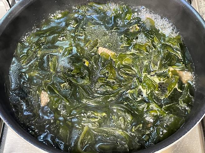 이렇게 미역을 불리고, 세척하여 끓이면 소고기, 국간장만 넣어도 깔끔하고 깊은 풍미가 살아납니다. 복잡한 조미료나 특별한 육수 재료를 더하지 않아도 좋습니다. 국물은 탁하지 않고 맑으며 소고기 본연의 고소함과 미역의 감칠맛이 완벽한 조화를 이루게 됩니다.
