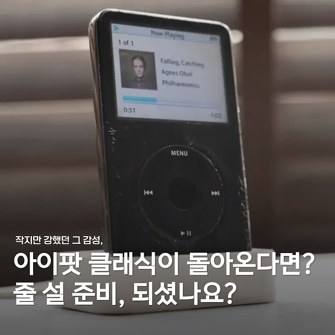 아이팟 클래식 감성 한정판이 다시 나온다면, 그 시절을 기억하는 많은 사람들은 분명 기꺼이 줄을 설 겁니다.