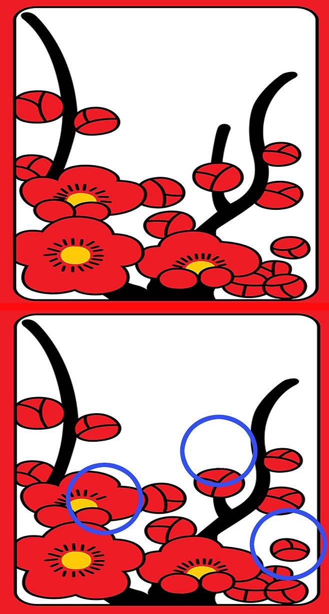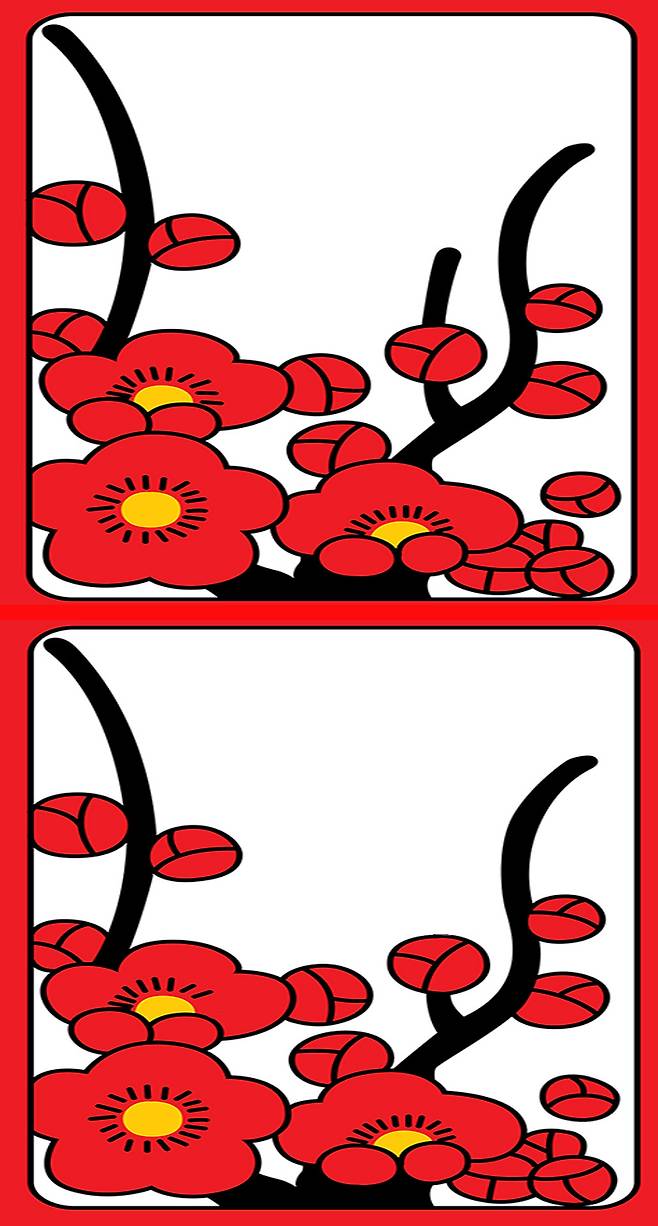 아래 2개의 화투 그림을 보고 서로 다른 3곳을 찾아주세요
