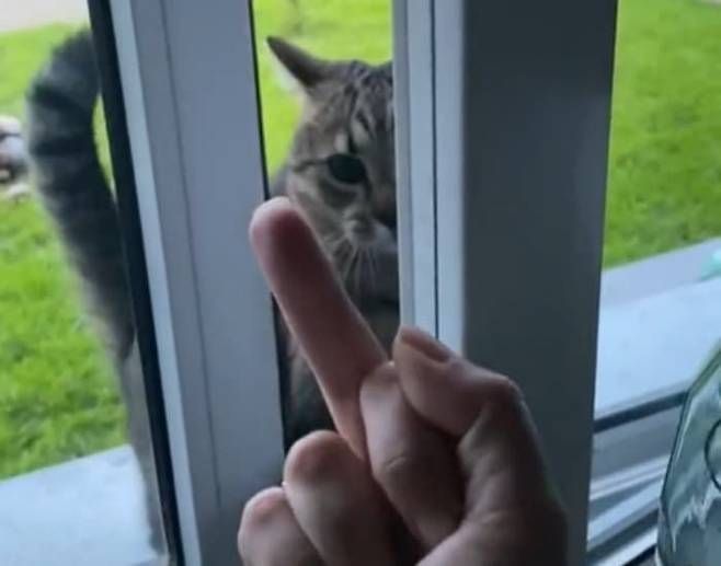 어느 평화로운 날이었어요. 고양이 브로는 창밖을 느긋하게 거닐면서 햇살을 만끽 중이었죠. 그 모습을 본 집사는 심심함을 달래려 창문을 툭툭 두드리기 시작합니다. 브로의 시선이 창문 너머 자신을 향하자 집사는 장난기가 발동해 그만 '가운데 손가락 욕'을 내밀고 말았답니다.