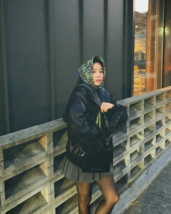 여기에 예원은 블랙 레더 재킷을 더해 스트리트와 빈티지 무드를 완벽히 결합했습니다.