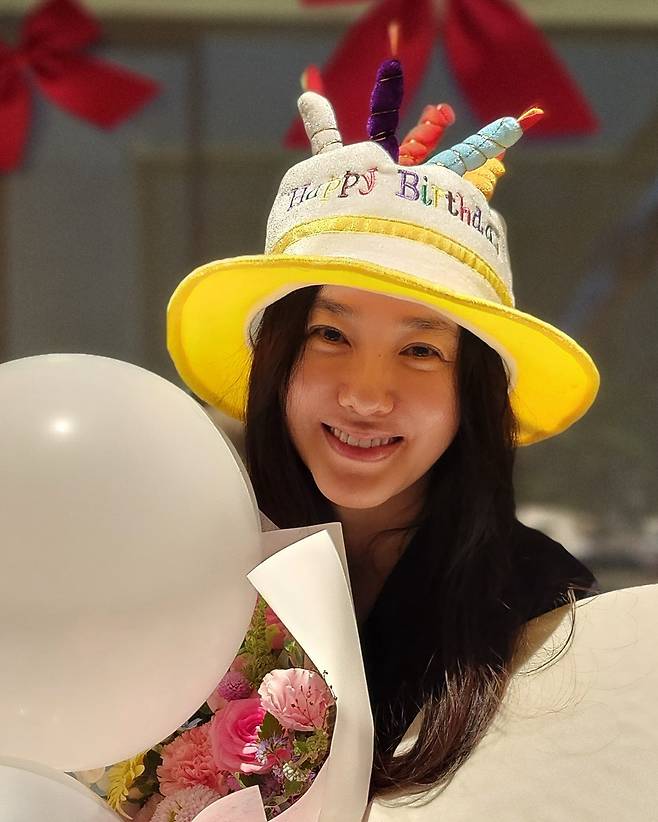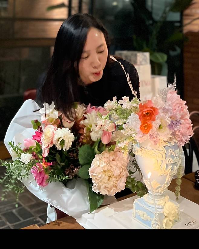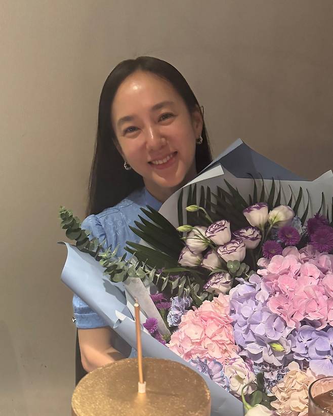또 다른 사진 속에서는 꽃다발을 들고 꽃보다 아름다운 미모를 뽐내는 중입니다.