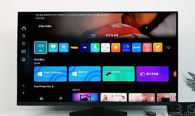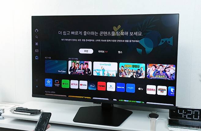 삼성 스마트 모니터는 기본적으로 삼성 TV 플러스라는 방송 스트리밍 서비스를 제공하고 있어, 뉴스나 드라마, 예능 등 다양한 카테고리로 구성된 컨텐츠를, 편성표에 따라 시청할 수 있게끔 했습니다. 이외에도 지상파와 종편 채널 등 예전 컨텐츠를 VOD 형태로 다시 볼 수 있도록 상당히 많은 콘텐츠를 담아내면서, 비교적 완성형에 가까운 티비 겸용 모니터를 완성했는데요. 대부분의 OTT나 스트리밍 앱 역시 QR코드로 연동 가능하기 때문에, 스마트폰으로 계정을 손쉽게 연결하여, 시청 중인 컨텐츠를 더 큰 화면에서 생생하게 시청할 수 있습니다.