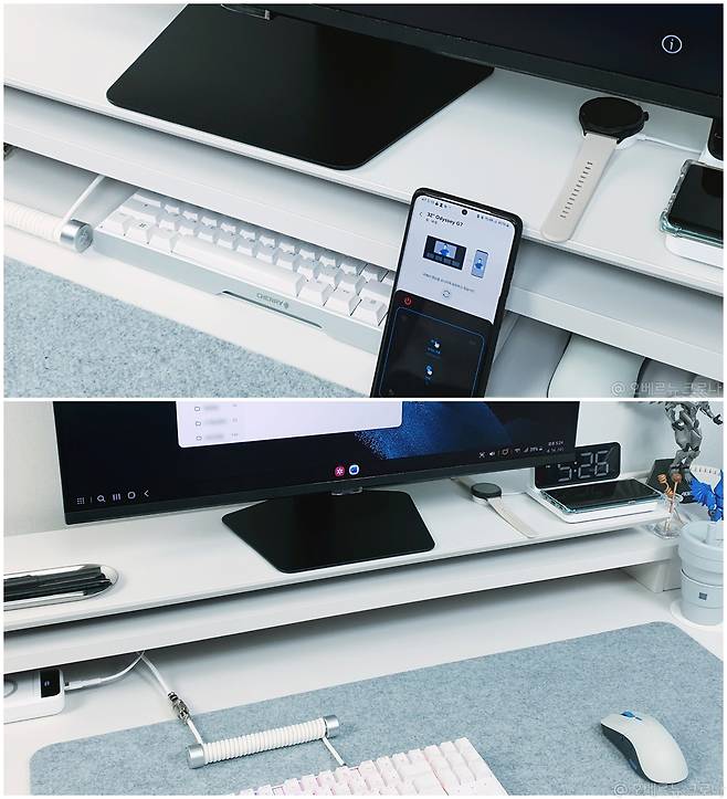 이는, PC와 노트북에서도, 무선 화면 공유 기능을 통해 활용 가능하며, 4K 기반의 넓은 작업 환경 그대로, 간단한 워크스테이션을 구성할 수 있는데요. 저는 가벼운 문서 작업 시 삼성 DeX를 통한 데스크톱 모드를 자주 활용하는데, 이때 스마트폰에 입력 기기를 연결하지 않아도, 모니터에 연결해 사용할 수 있기 때문에, 데스크탑과 상당히 가까운 작업 환경을 제공합니다. 특히, 삼성 오디세이 G7의 경우에는 32인치 모니터로, 컴퓨터 모니터 중에서도 큰 편에 속하다 보니, 대화면에서 멀티태스킹 작업을 수월하게 진행할 수 있고요.