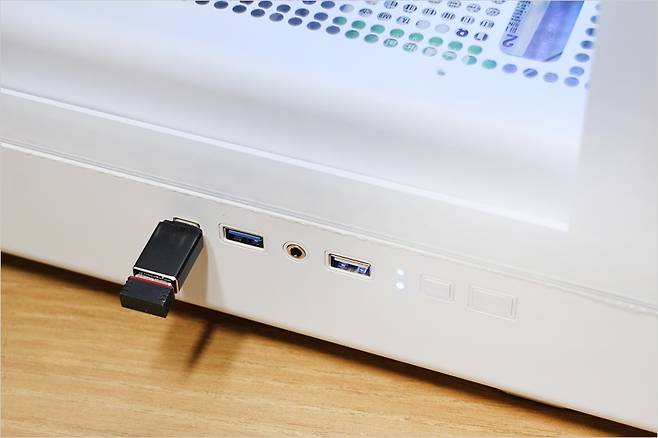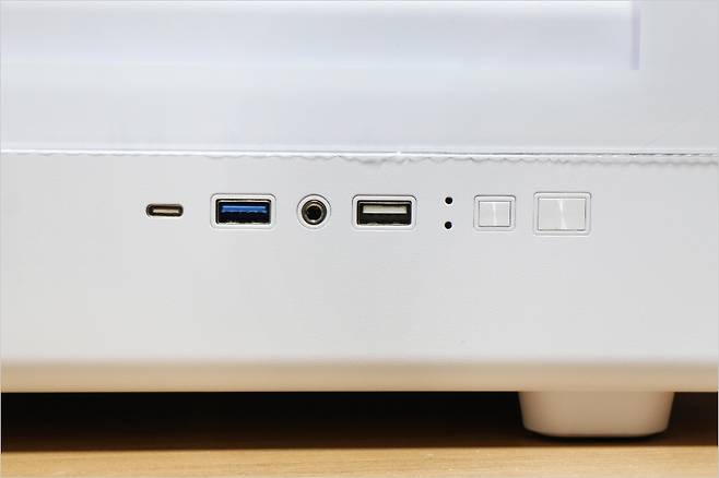 전면 포트나 리셋 및 파워버튼은 하단부에 위치하고 있어서 M-ATX 미니케이스 답게 책상에 올려두고 사용하기 좋은 설계입니다. USB 3.0, USB 2.0 지원뿐만 아니라 Type-C 포트를 지원해 다양한 기기들을 젠더 없이 사용할 수 있습니다.