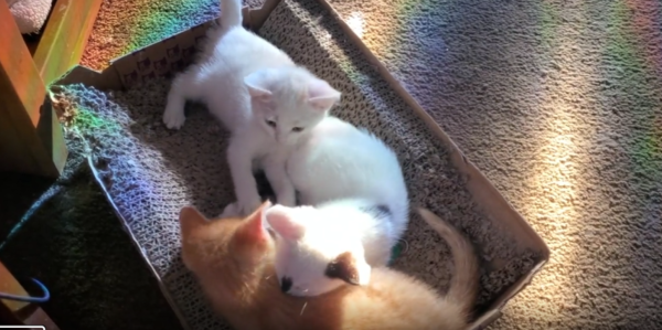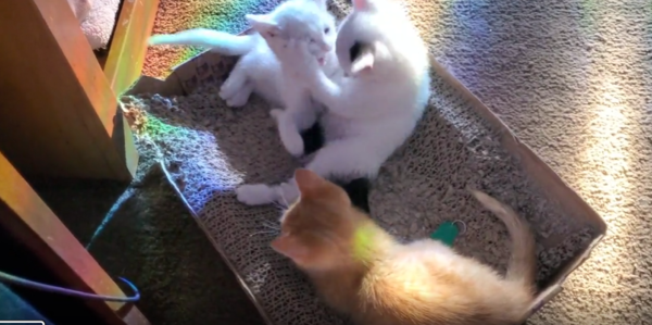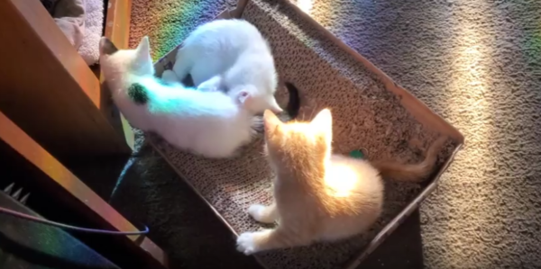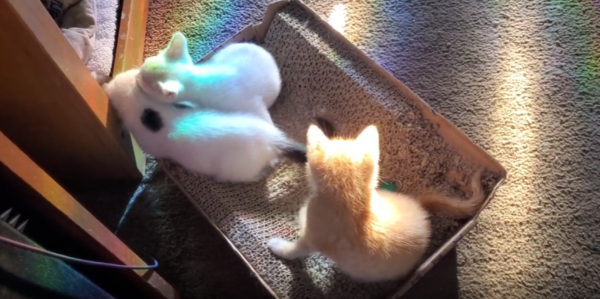 햇살이 길게 드리워진 저녁 무렵, 따스한 빛이 마당 한가운데를 물들입니다. 그곳에 고요히 놓인 바닥 위, 새끼 고양이 세 마리가 놀고 있습니다. 말간 빛 속에서 반짝이는 작은 눈동자들과, 부드럽게 나풀거리는 꼬리들. 각각의 몸짓엔 갓 세상을 알아가기 시작한 존재들만의 호기심과 생기가 가득 담겨 있었죠.