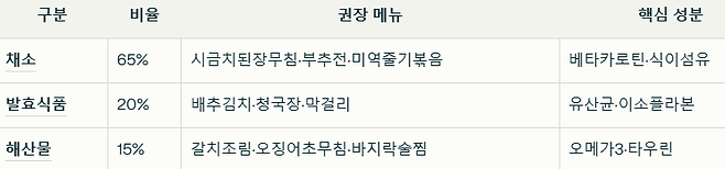 65% 채소 + 20% 발효식품 + 15% 해산물의 기적적 조합