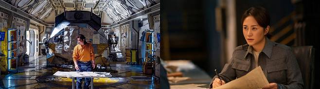 공개된 보도스틸은 실제 달에 와있는 것처럼 느껴질 만큼 생생하게 재현한 달 기지와 우주 공간으로 보는 이들의 시선을 사로잡는다.